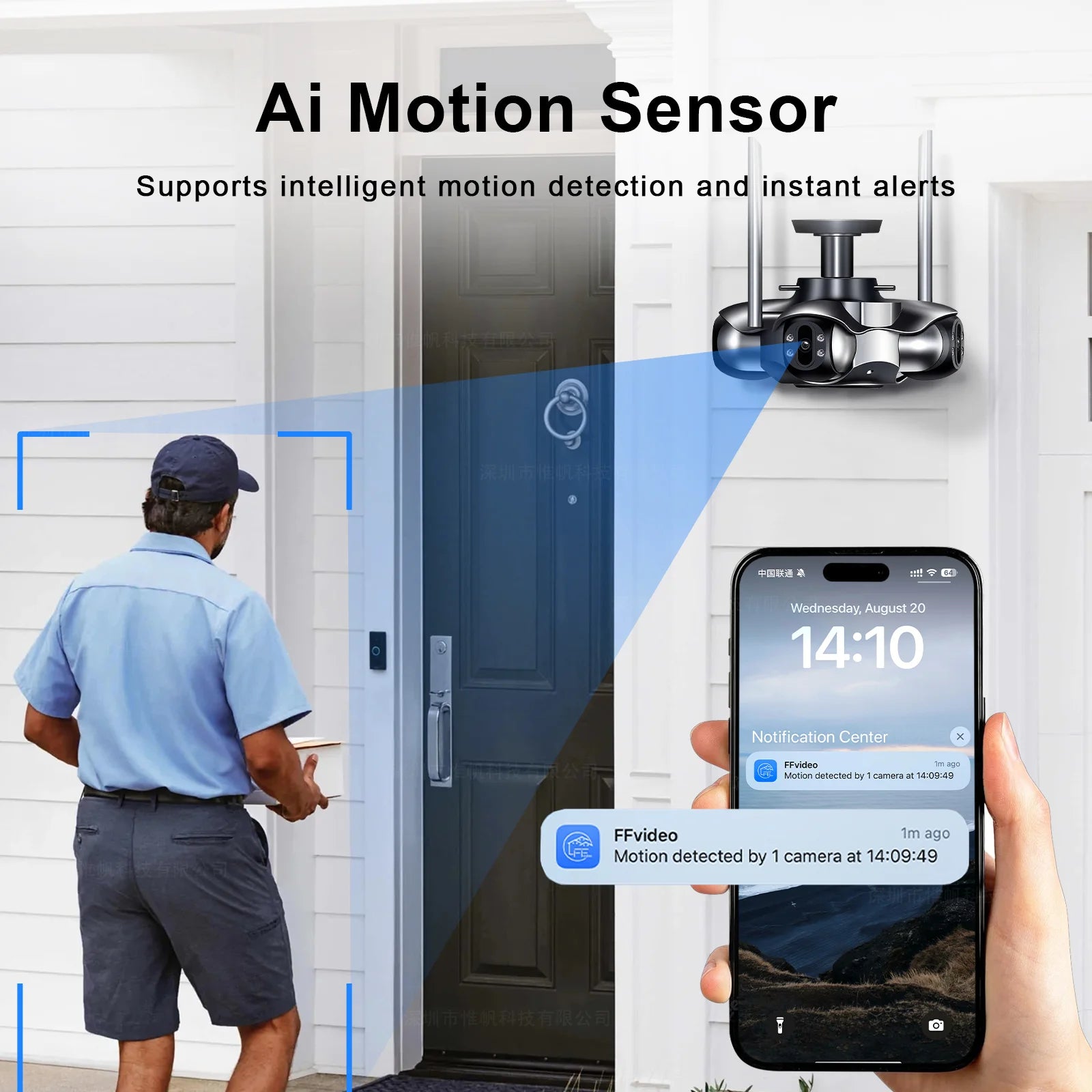 ANSVICAM 10K 20MP HD Four Screens WiFi IP Camera Wireless Outdoor PTZ Four Lens Human Auto Tracking Surveillance Cameras FFVideo